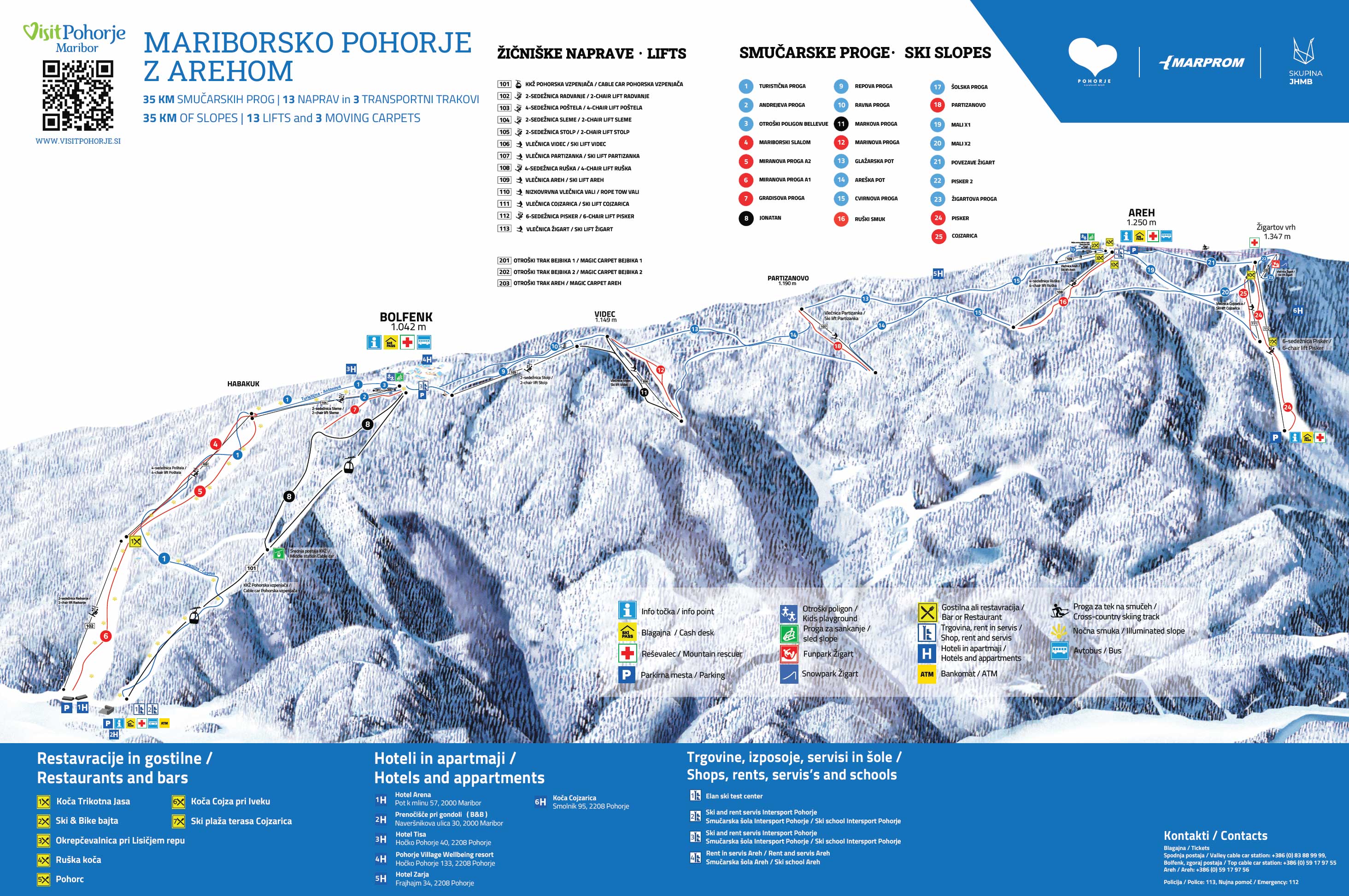 | KM of pistes in Mariborsko Pohorje: | 35km | ||