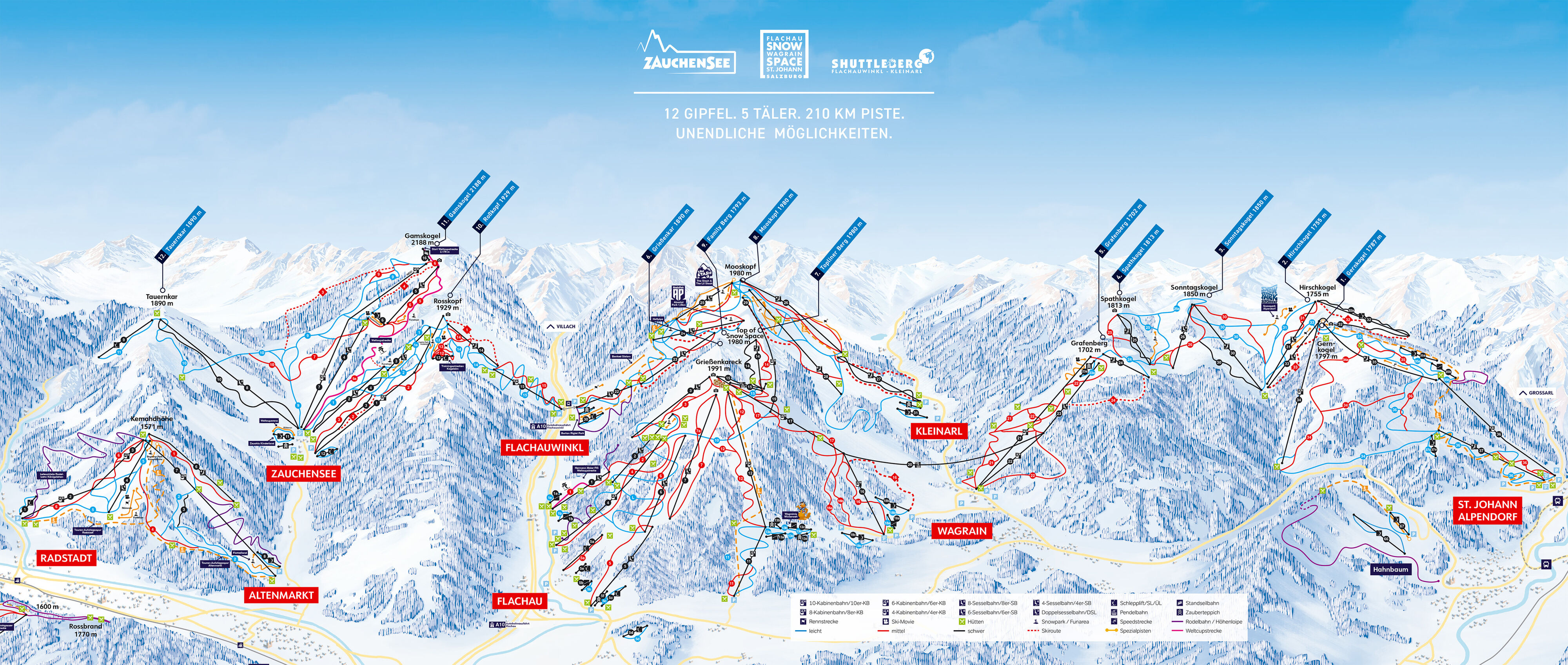 | Zauchensee Piste altitude: | 1350m-2188m | ||